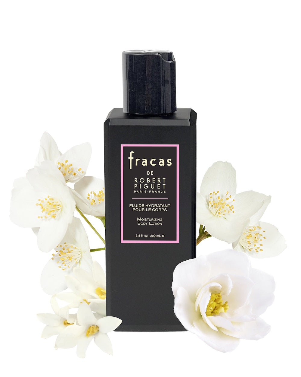 Set includes 6.8 Fl Oz, 200 ml and travel size 2.5 Fl Oz, 75 ml Fracas body lotions.