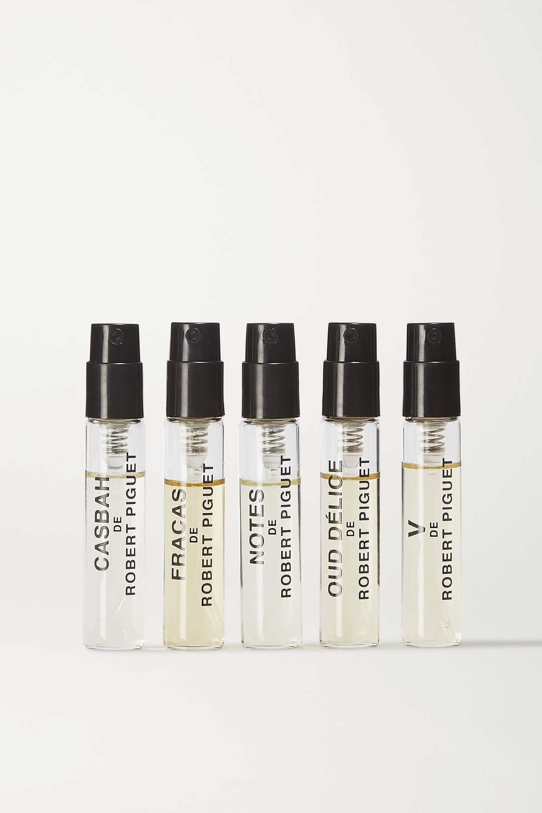 Five of our most enticing scents presented in 2.5 ml samplers. Housed in a chic pull-out coffret, L' Expérience Piguet is the most exciting way to dip your toes into the incredible world of this niche fragrance brand legend. Fragrances include Fracas, Casbah, V, Oud Délice and NoteS.
